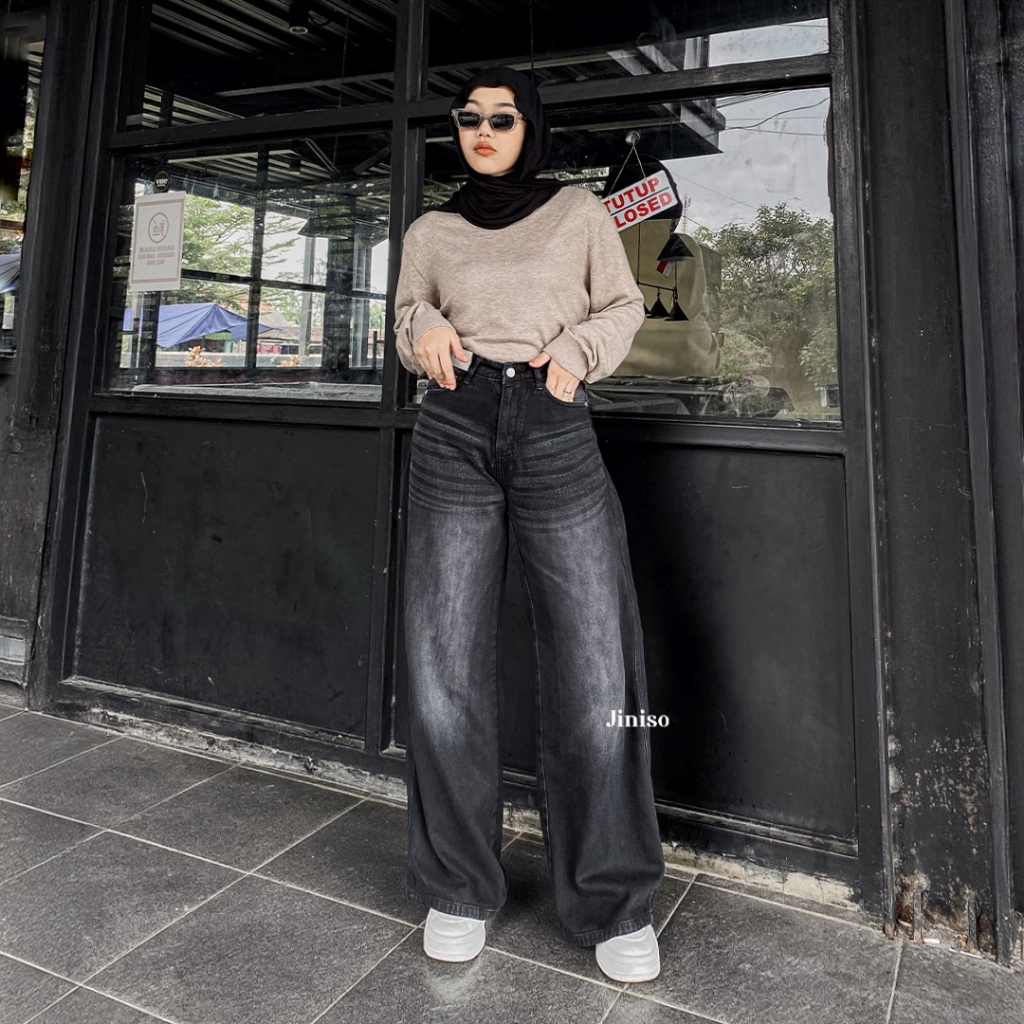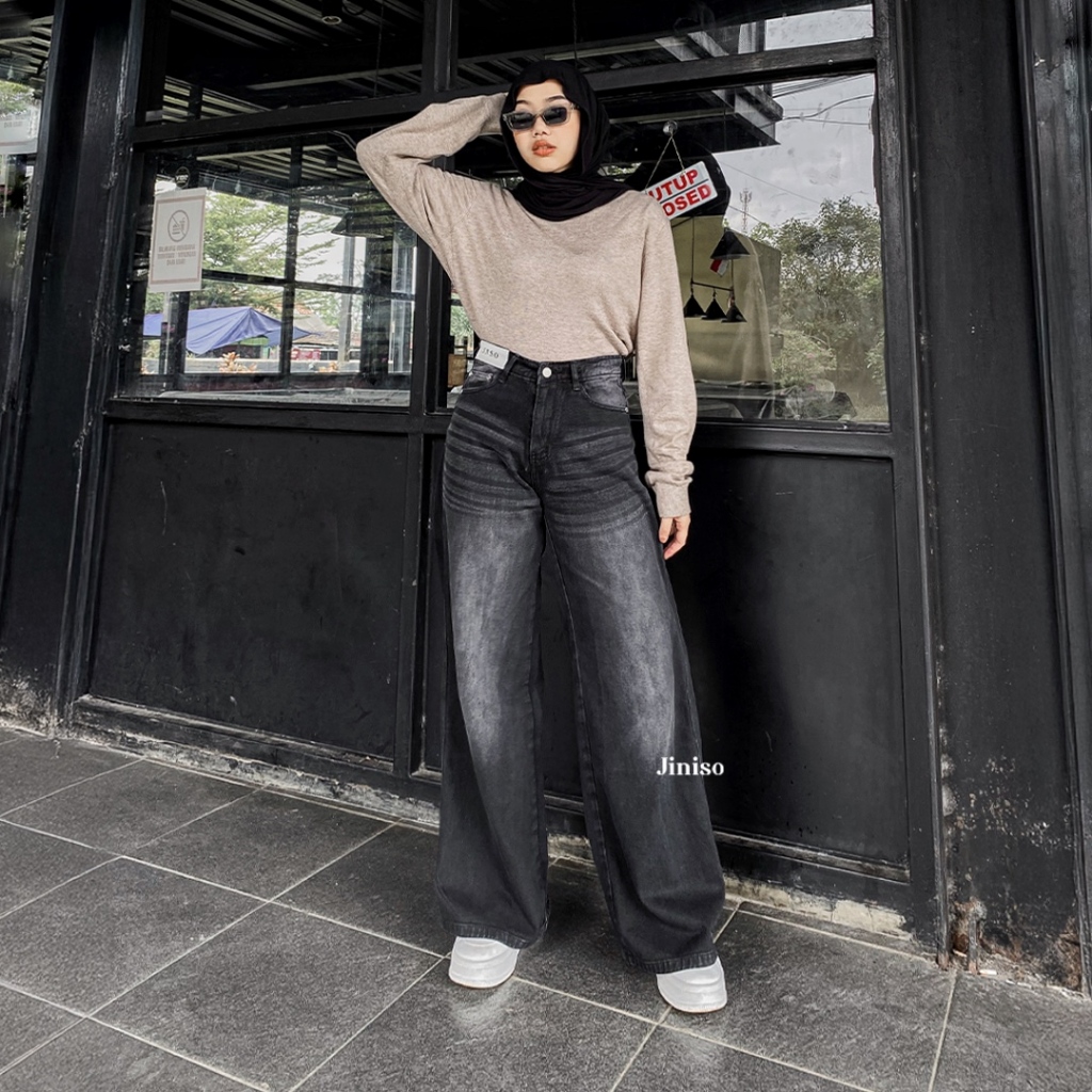 celana jeans wanita jiniso jumbo high waist cutbray kulot sobek cargo pants jumbo Baggy Loose WEEKEND jiniso official
