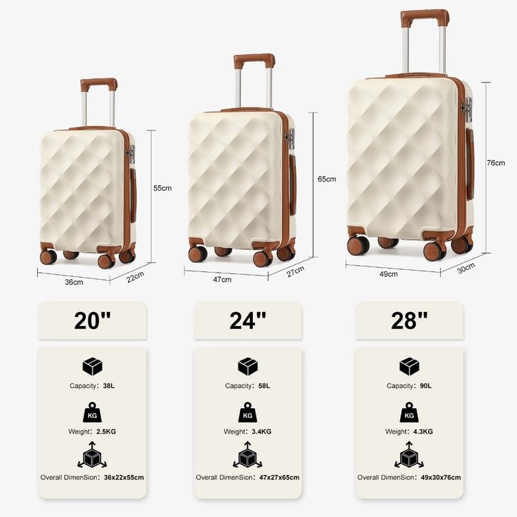 SEA CHOICE Kabin Koper Set 20/24/28 inch Suitcase ABS Hardcase Spinner Bagasi Tas Travel
