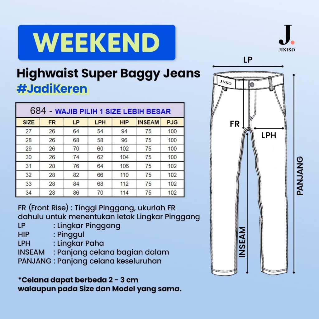 celana jeans wanita jiniso jumbo high waist cutbray kulot sobek cargo pants jumbo Baggy Loose WEEKEND jiniso official