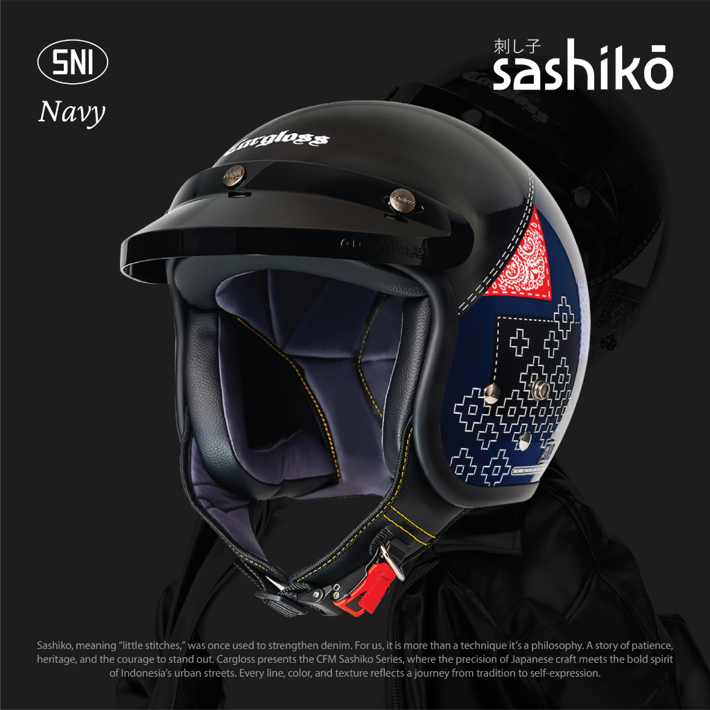 Cargloss Official Store - Cargloss CFM Retro Helm Half Face - Sashiko Navy Original [ SNI ]