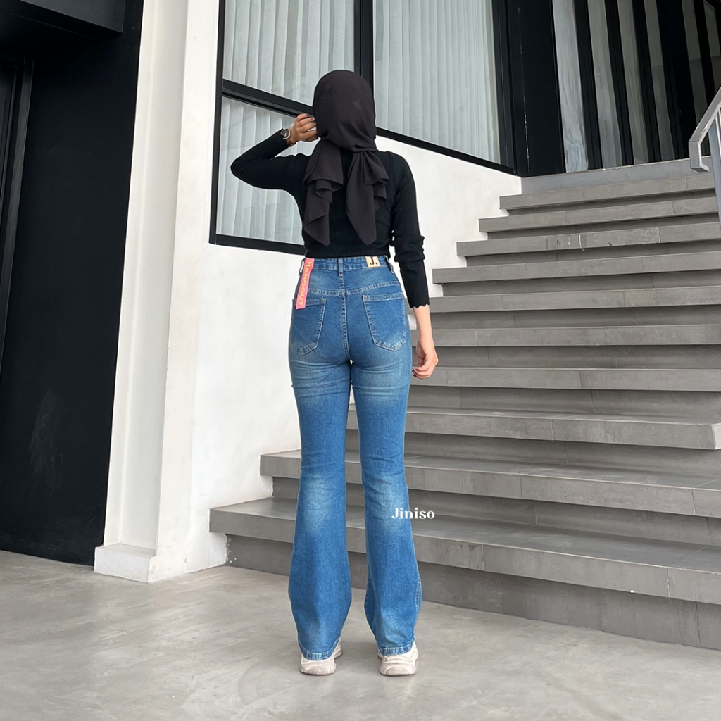 celana jeans wanita jumbo high waist cutbray kulot sobek cargo pants jumbo Stretch Pocket HANGOUT jiniso official store