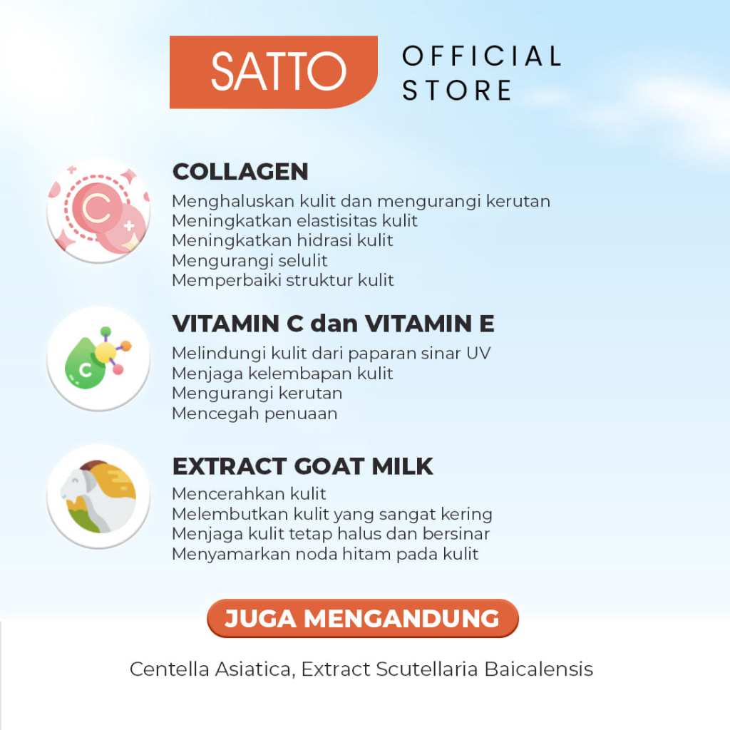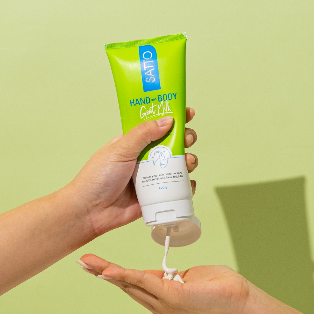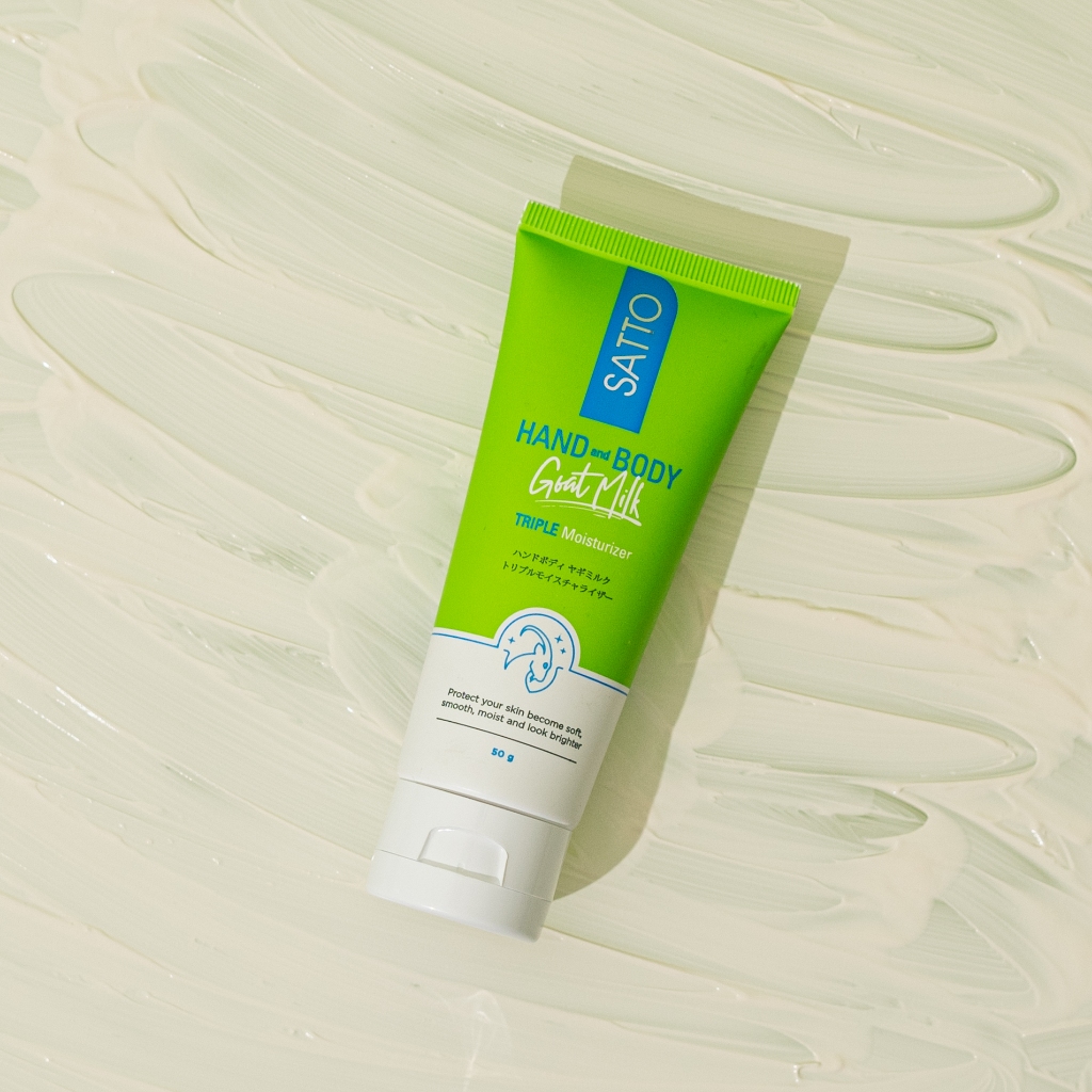 Satto Hand & Body Lotion Goat Milk 50G – Susu Kambing, Toneup Whitening & Triple Moisturizer, Melembabkan