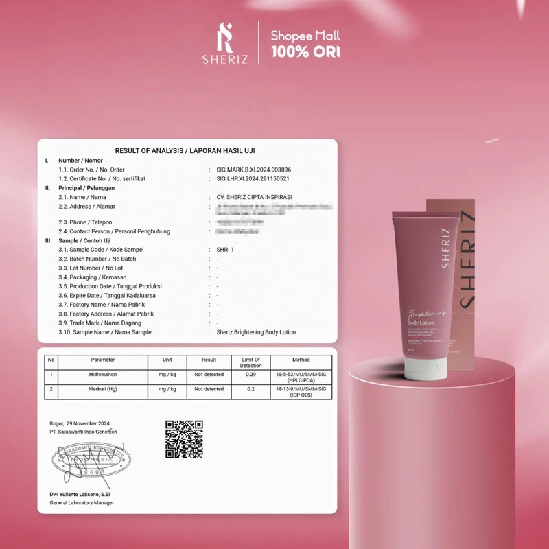Sheriz - Body Lotion Whitening Pemutih 100 Ml | Penghilang Bekas Luka |