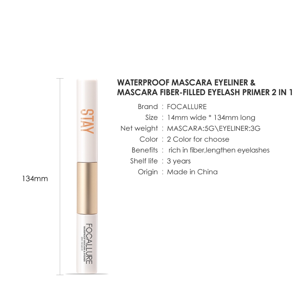FOCALLURE 2 In 1 Waterproof Maskara & Eyeliner fiber eyelash primer