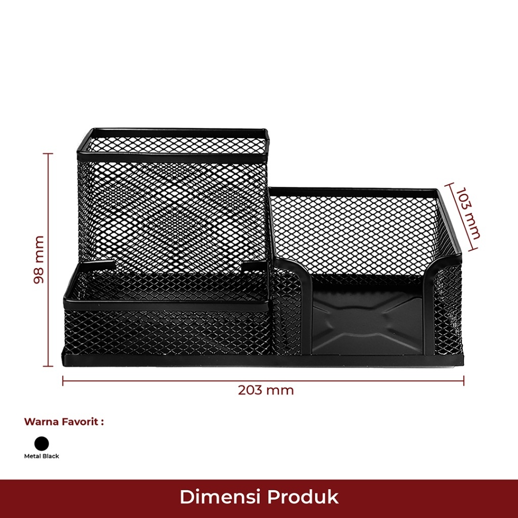 Memo Holder Desk Set Tempat Pena Tulis Meja Kantor Jaring Besi 3 Sekat