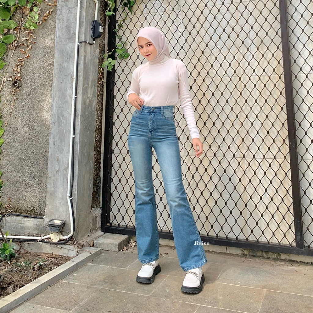 celana jeans wanita jiniso jumbo high waist cutbray kulot sobek cargo pants jumbo Stretch Pocket HANGOUT jiniso official