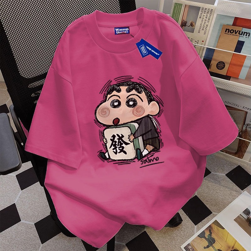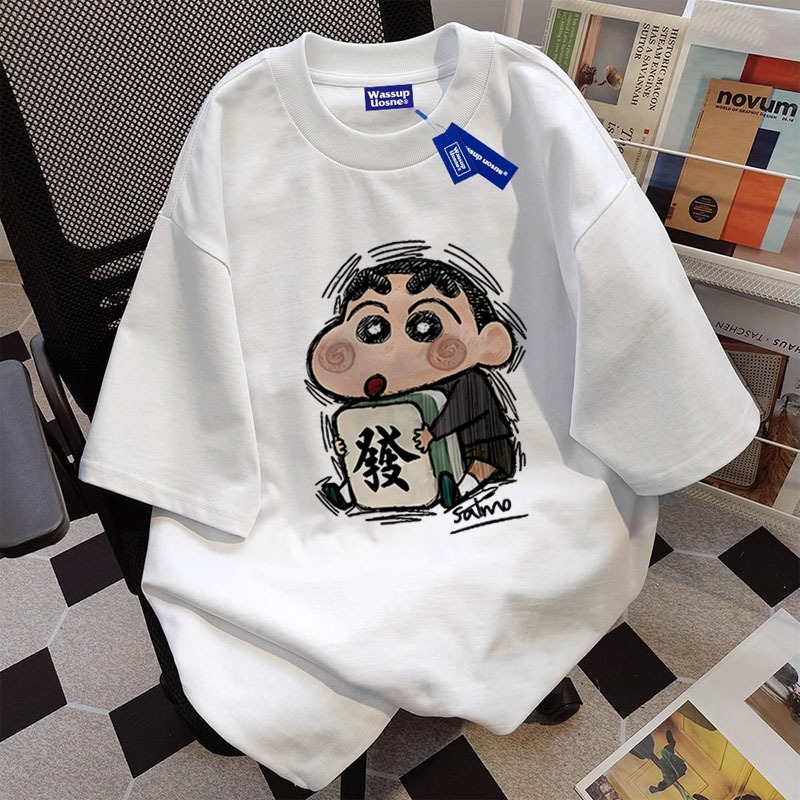 Mahjong Crayon Shin Kartun pola pencetakan Gaya Amerika baju atasan wanita terbaru kaos pria oversize couple t shirt vintage