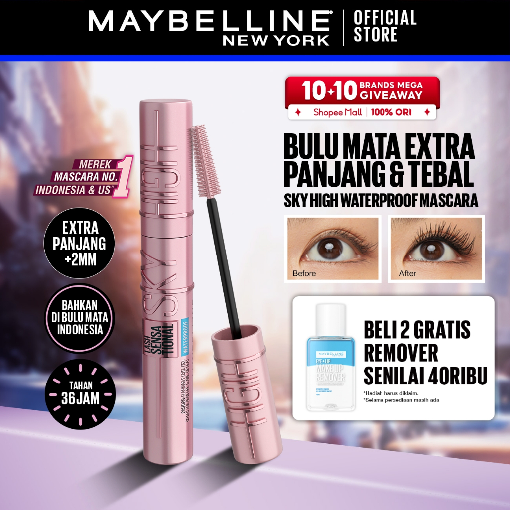 MAYBELLINE OFFICIAL Sky High Waterproof Mascara 6ml - Maskara Eye Make up Black Bulu Mata Panjang Tebal Tahan 24 Jam Vol