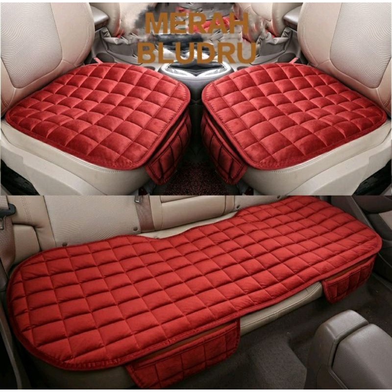 ALAS DUDUK JOK MOBIL 3 IN 1 BAHAN BLUDRU LEMBUT ANTI PANAS