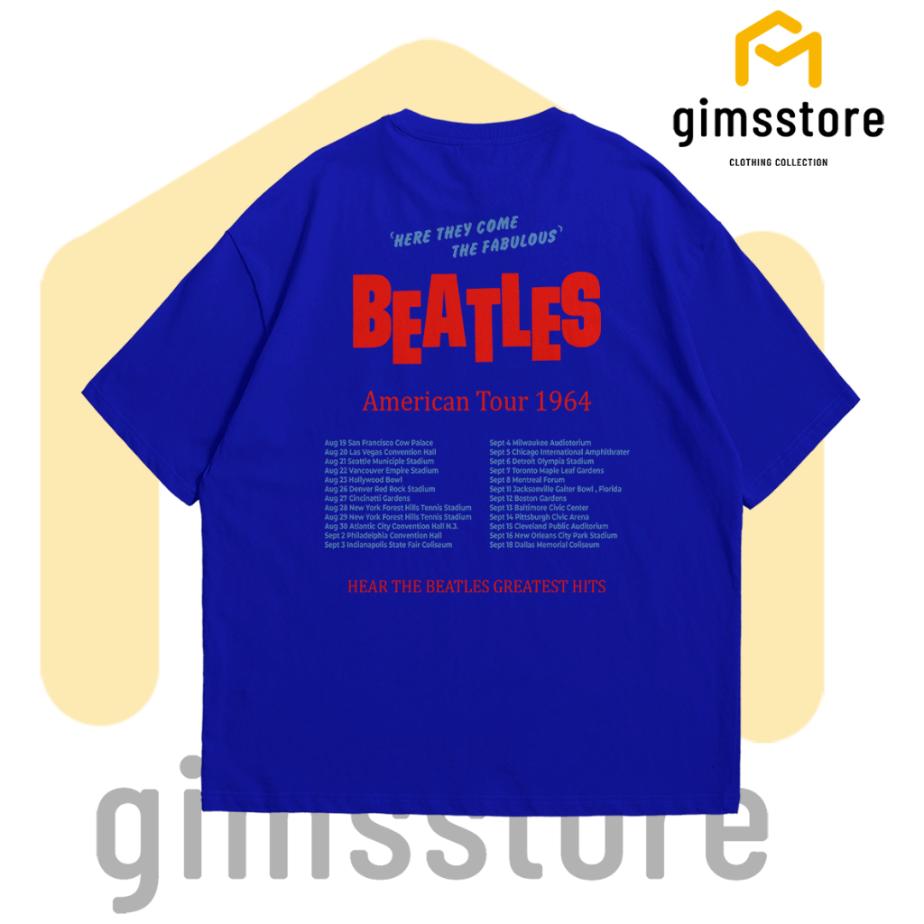 Gimsstore T Shirt The Beatles Tour America Biru Benhur Coksu Custom Sablon Satuan Lusinan DTF Pria Wanita Premium Poly Cotton 24s Printing DTF Kaos Street Wear Kaos Band Distro Premium