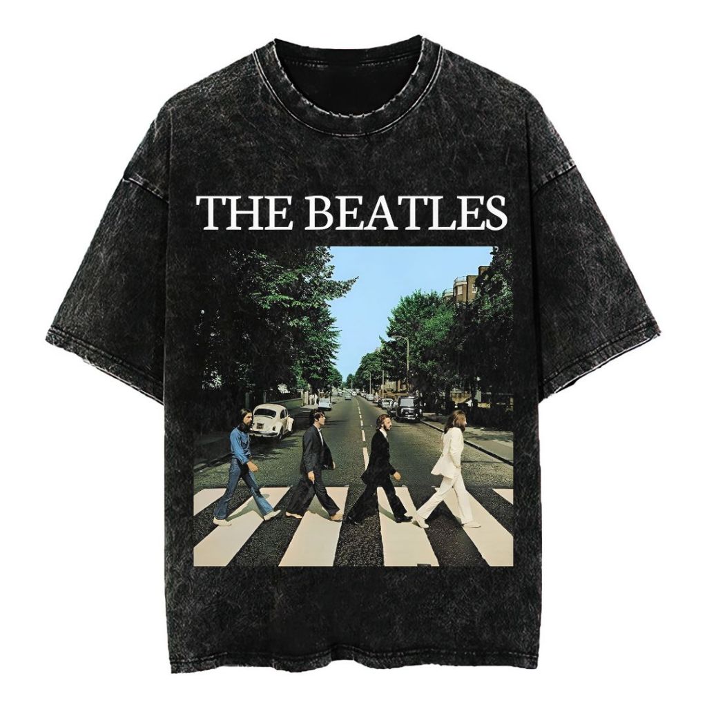 Psycho Crucify The BeatlesOversized T Shirt Stone Wash Kaos Oversize Vintage Atasan Kaos Band