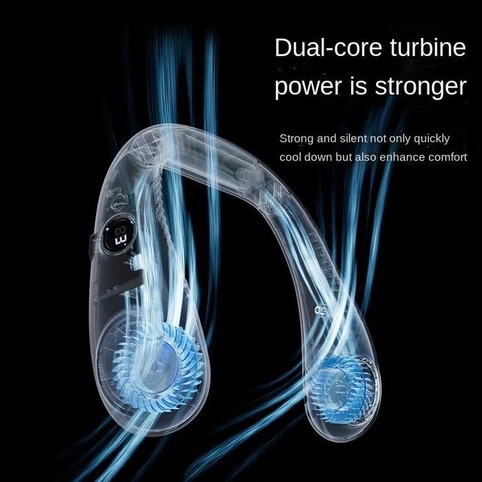 GOOJODOQ USB3.0 DIGITAL DISPLAY DUAL TURBINE PORTABLE HANGING NECK FAN - HIJAU