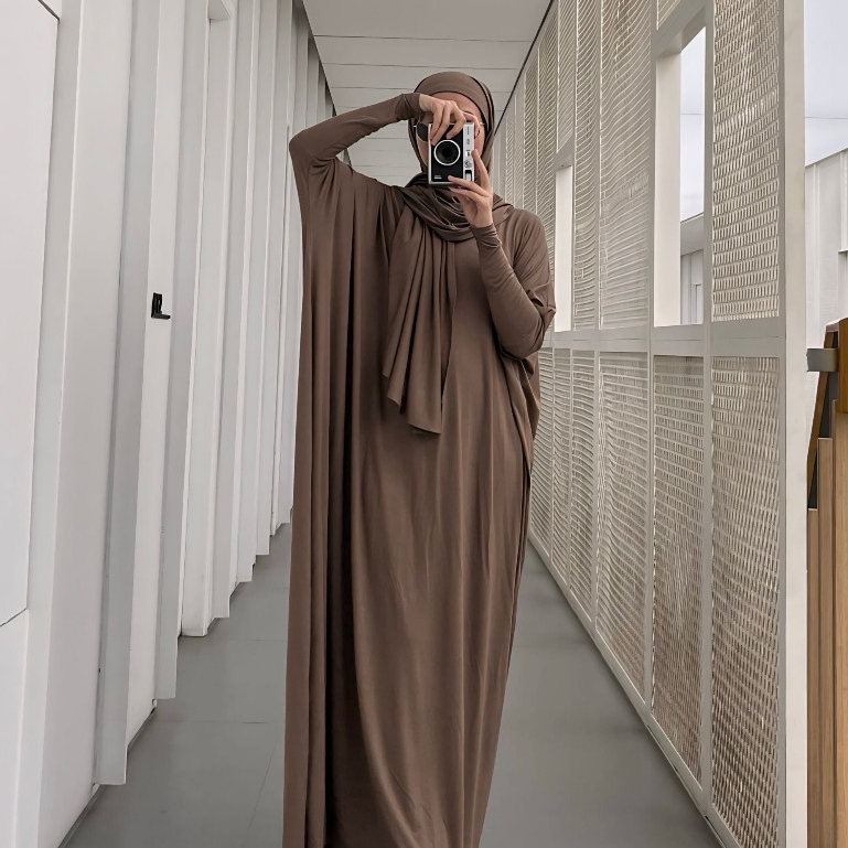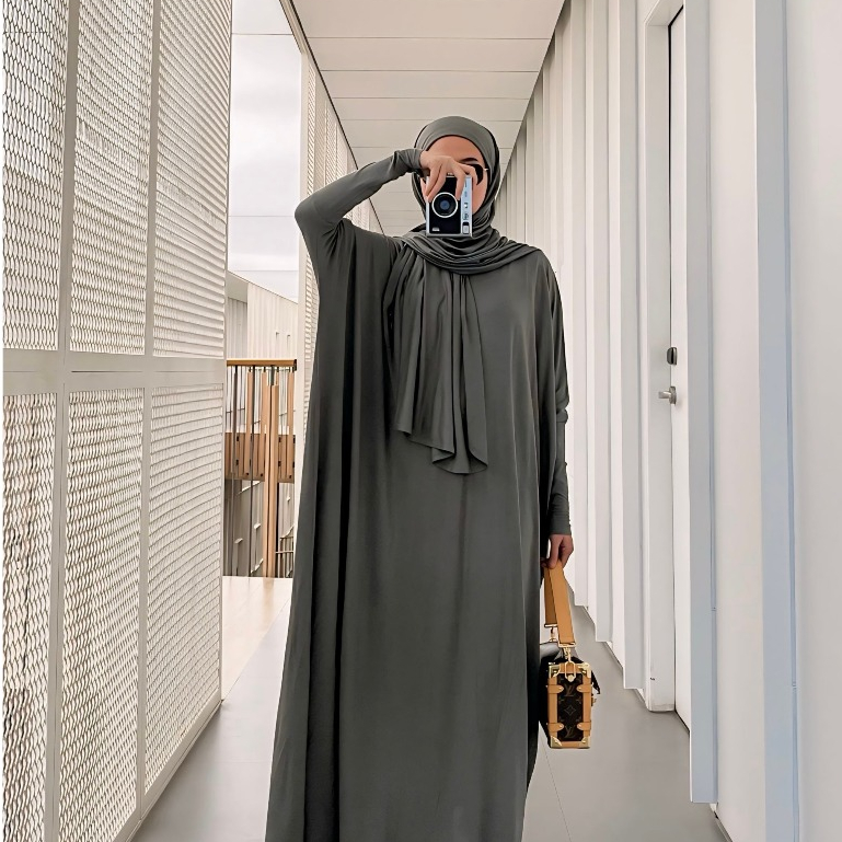 GONEGANI OFFICIAL - Set Hijab dan Dress Batwing Plain Set
