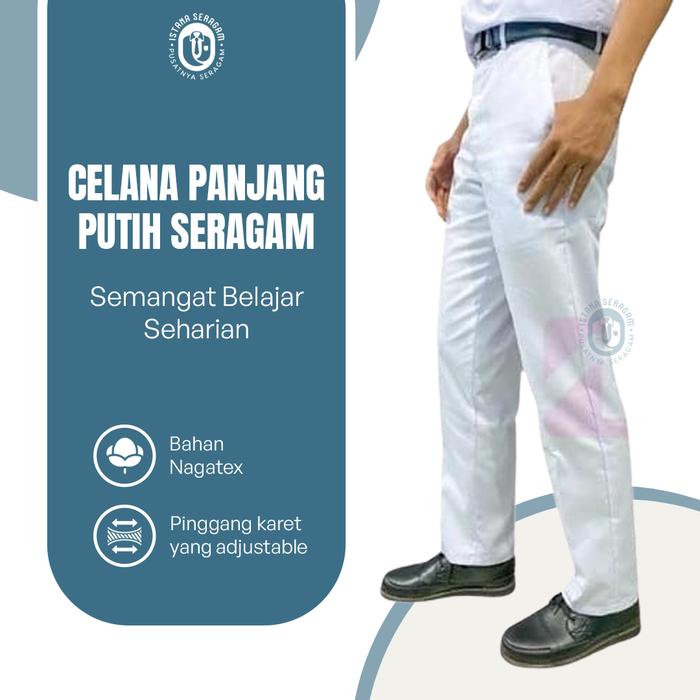 CELANA PANJANG SD MI CELANA SEKOLAH PUTIH DENGAN PINGGANG KARET BAHAN NAGATEX NYAMAN TIDAK LUNTUR UKURAN 25 SD 40 - 25/26