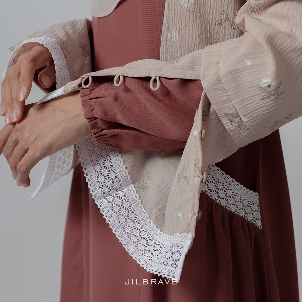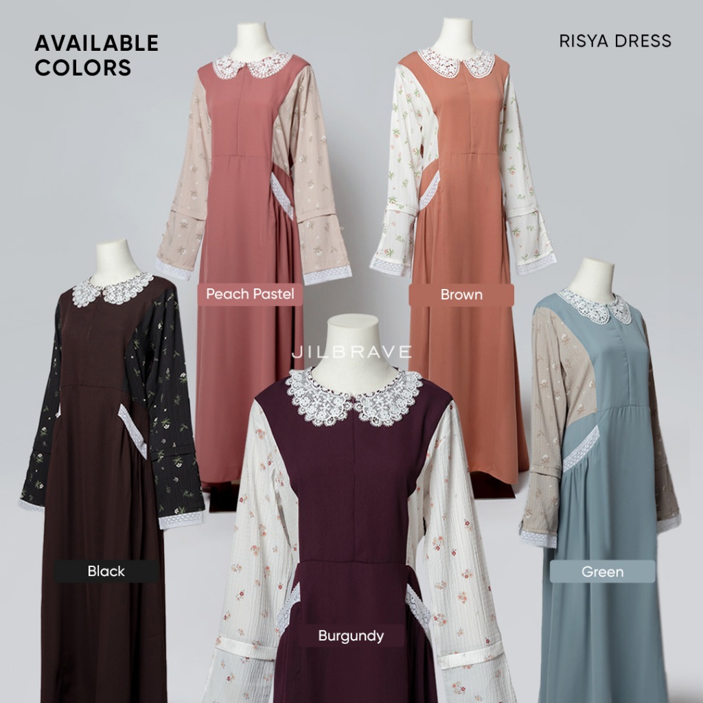 [BUY 300K GET 1 FREE PRODUCT] Jilbrave Risya Dress Gamis Kondangan Feminine Kombinasi Motif Bunga Elegant Chic Look