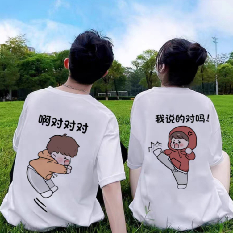 Kaos Couple dengan Desain Kartun Imut dan LucuTema Interaksi Cowok CewekPendekLebarKatun PremiumUnisex