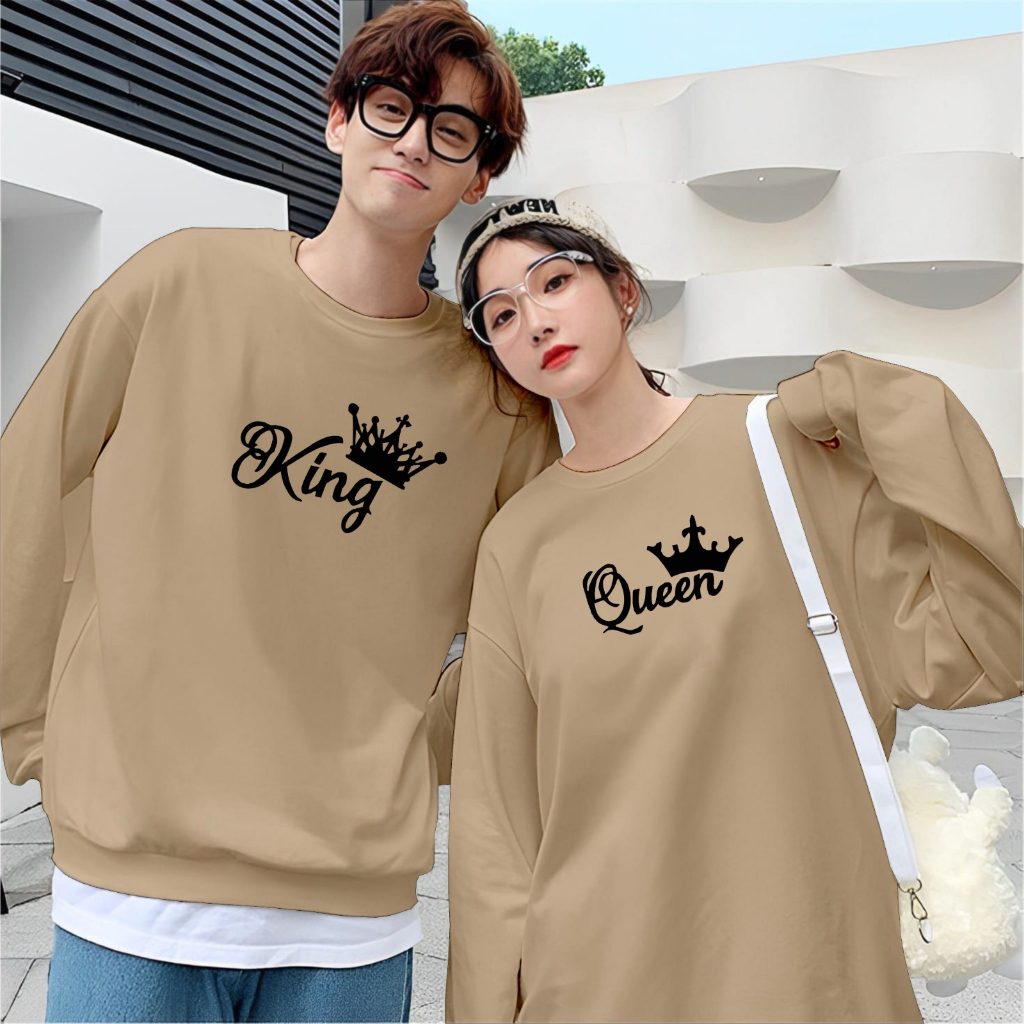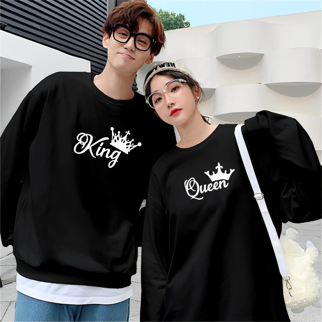 Kaos Couple Pasangan King Queen Kaos Pria Wanita Lengan Panjang Bahan Baby Terry Premium Kaos Kapelan