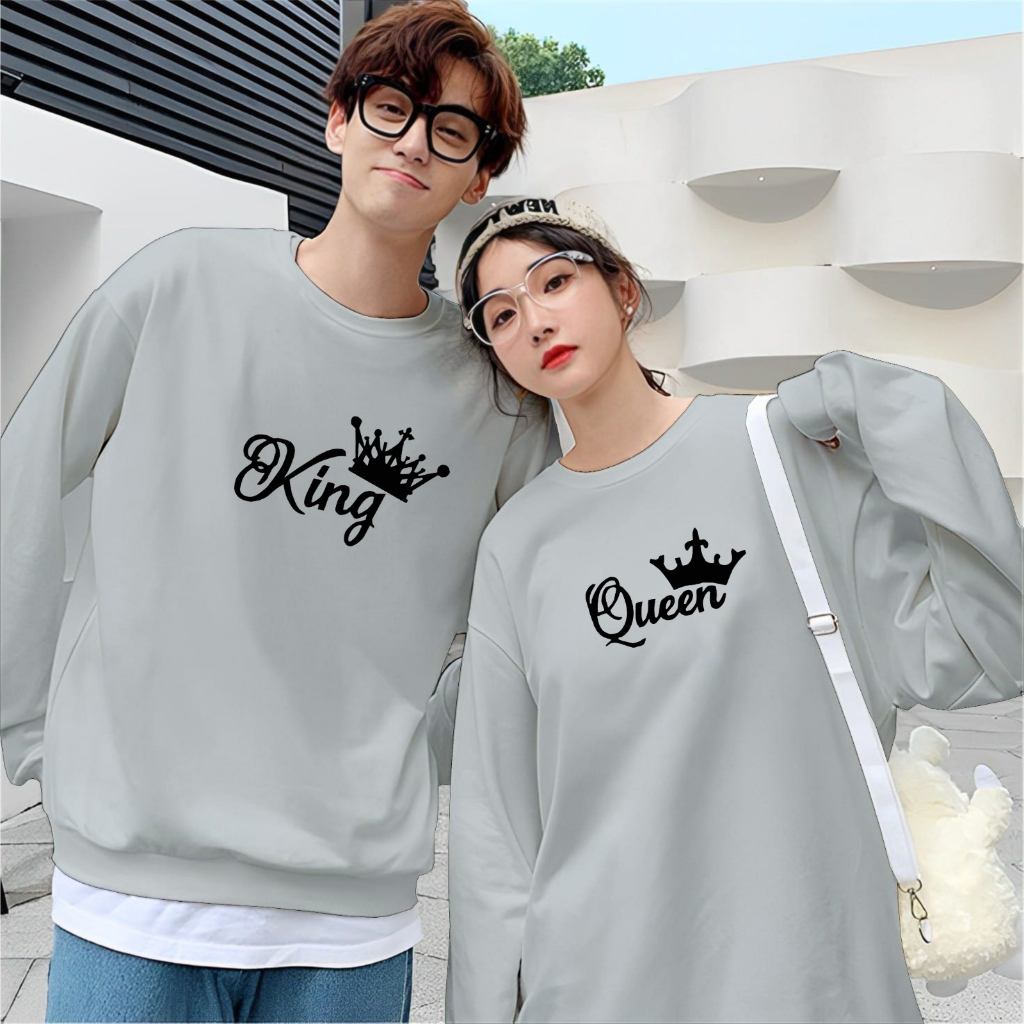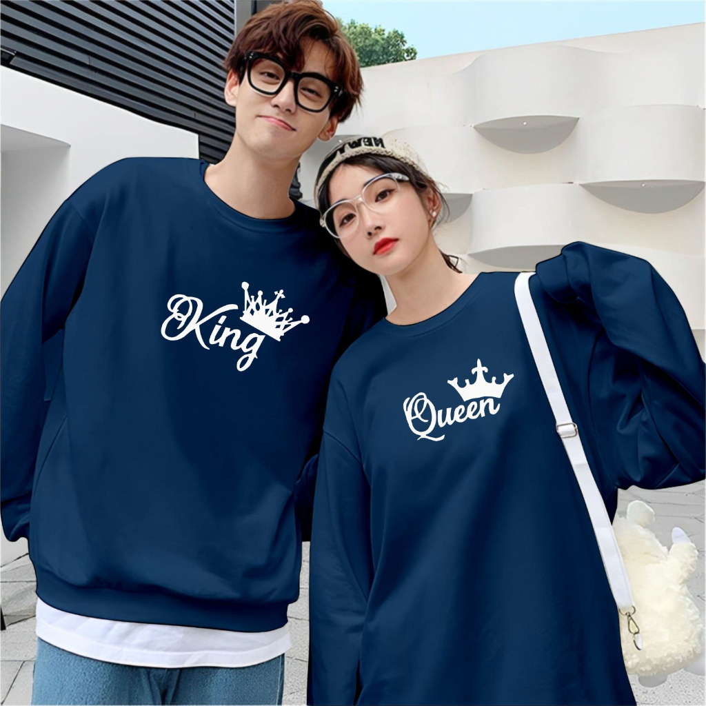 Kaos Couple Pasangan King Queen Kaos Pria Wanita Lengan Panjang Bahan Baby Terry Premium Kaos Kapelan
