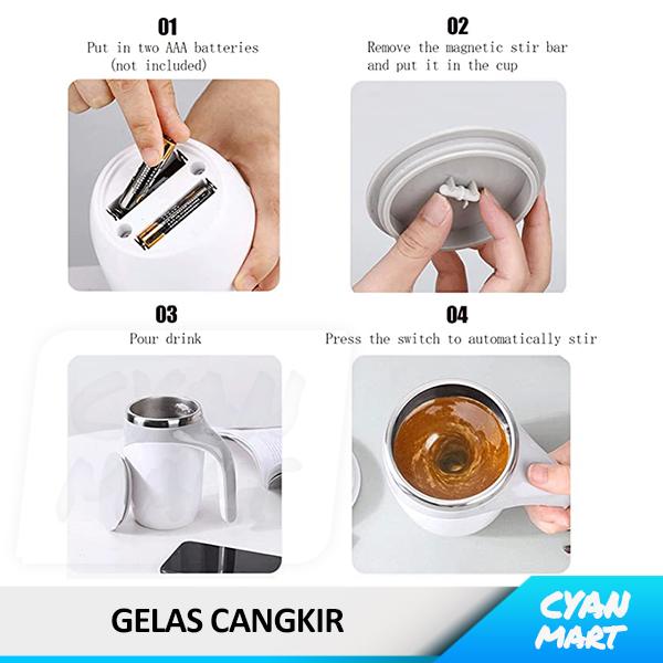 GELAS ADUK SENDIRI OTOMATIS UNIK AUTOMATIC MAGNETIC SELF STIRRING MUG - PUTIH
