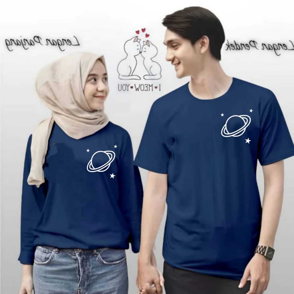 VLN Baju Kaos Couple Logo Planet Pasangan Pria Wanita Lengan Panjang Dan Lengan Pendek Bahan Premium