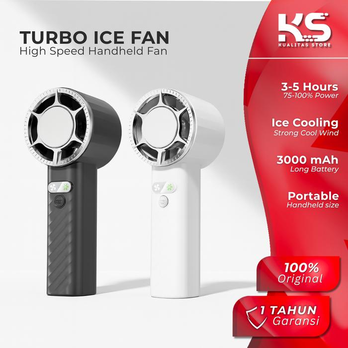 ICE COOLING TURBO HANDHELD FAN PORTABLE / KIPAS USB TANGAN GENGGAM HIGH SPEED POWER 3000 MAH 3-5 HOURS - PUTIH