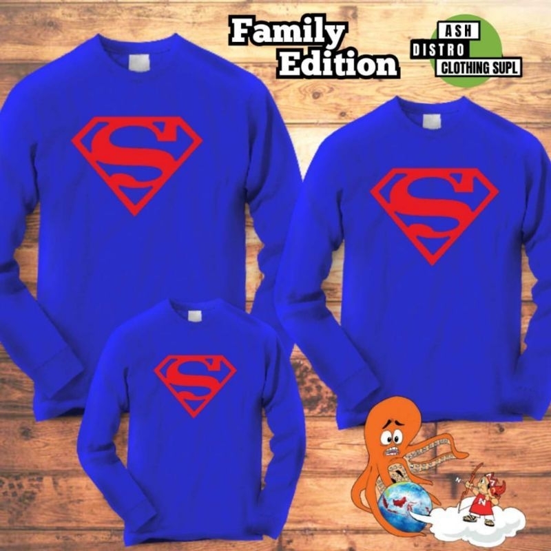 Baju couple keluarga kaos lengan panjang kapel ayah ibu dan anak motif superhero