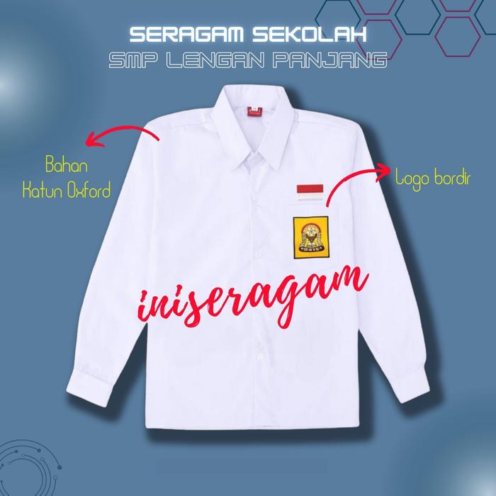 BAJU SERAGAM SEKOLAH OSIS PUTIH SMP SMA KEMEJA ATASAN LENGAN PANJANG BAHAN KATUN OXFORD LAKI LAKI PEREMPUAN WANITA TANGAN PANJANG BORDIR - SMP PJG, 13
