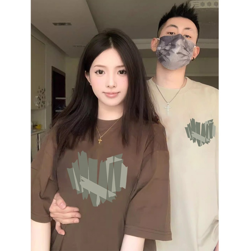 retro Amerika cinta hijau baju kaos pria T shirt wanita t shirt pria couple pasangan oversize couple