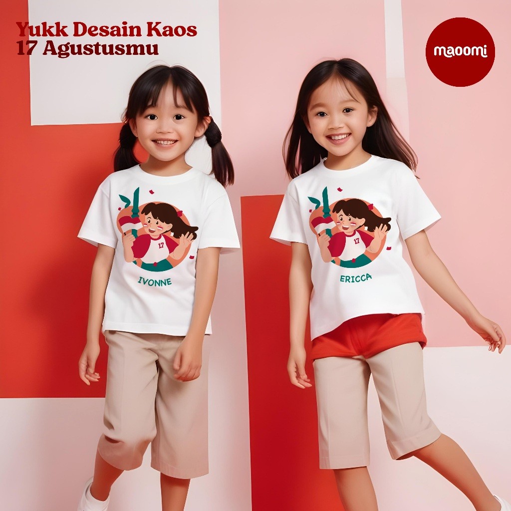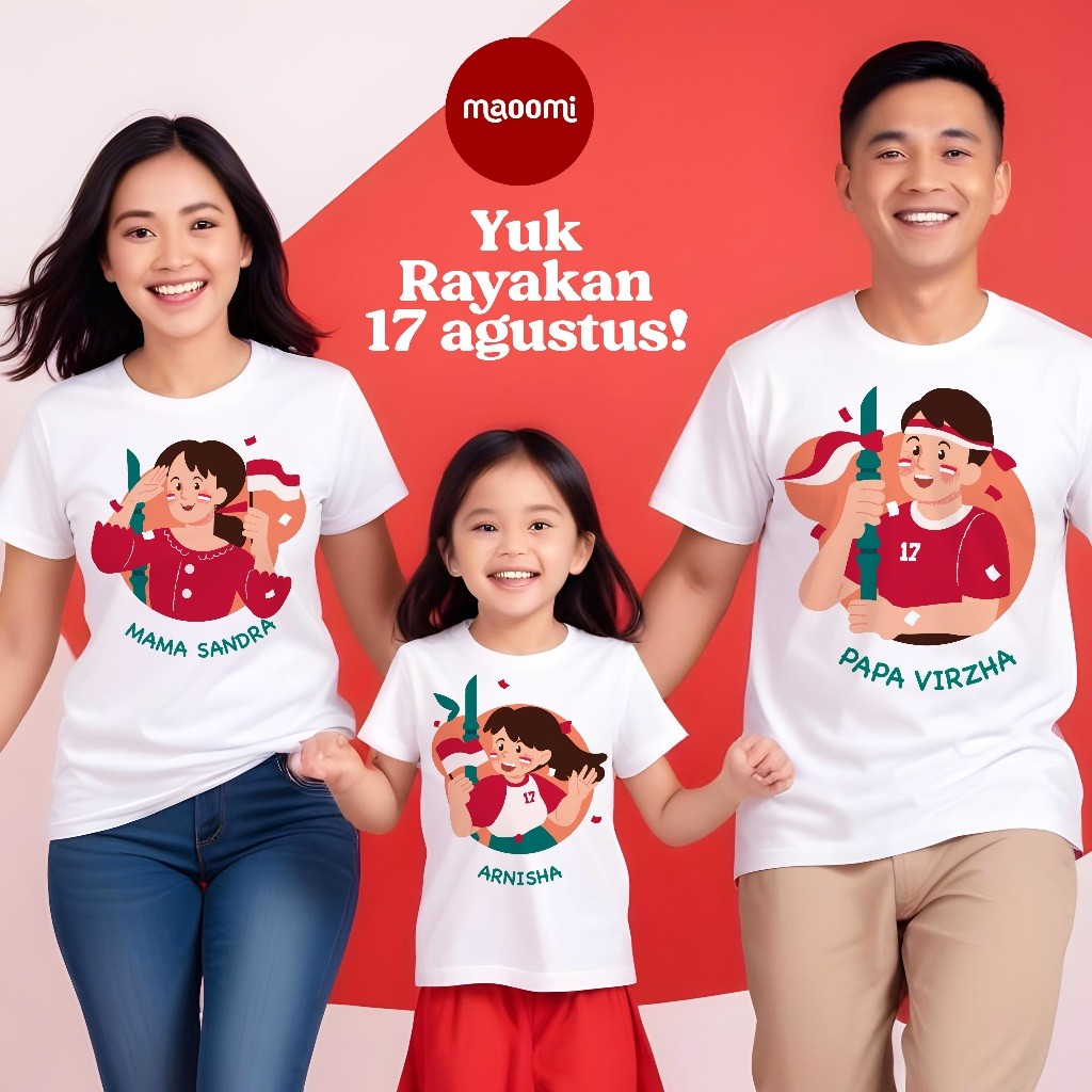 BOS FASHION - Maoomi - Kaos Merdeka - Baju Custom Nama Anak Couple Keluarga - Cotton Combed 30s - 17 Agustus 2024