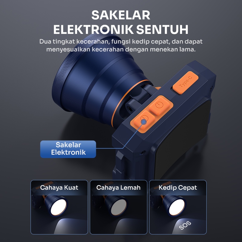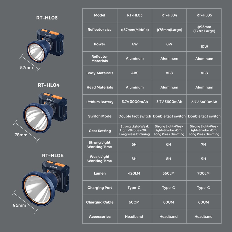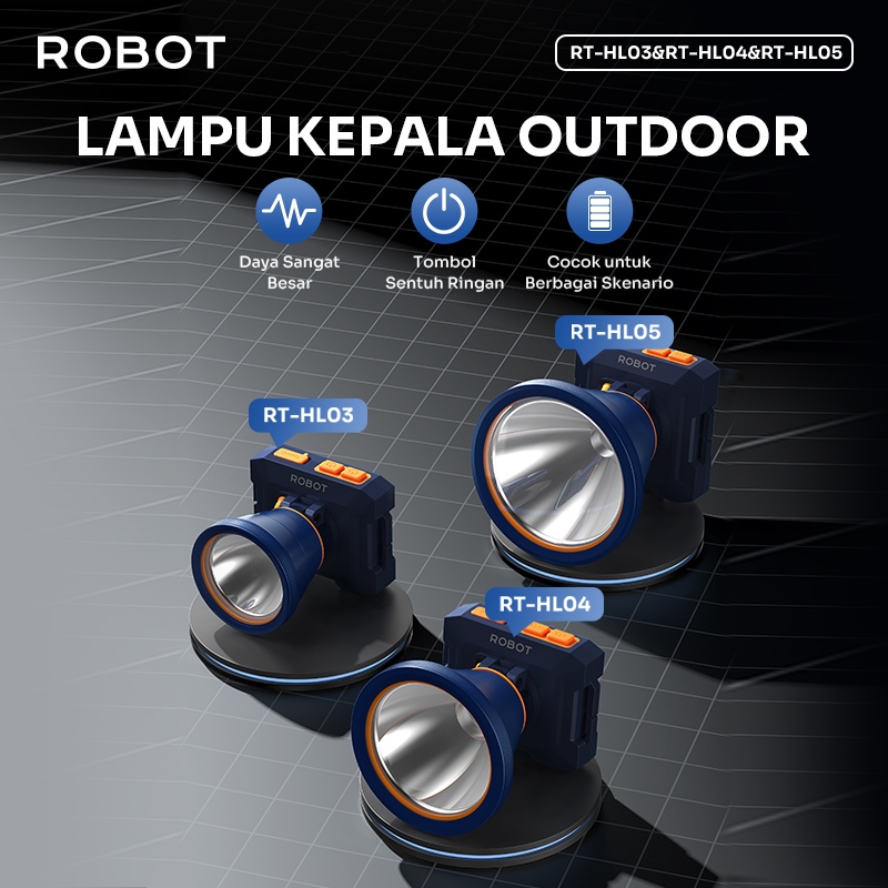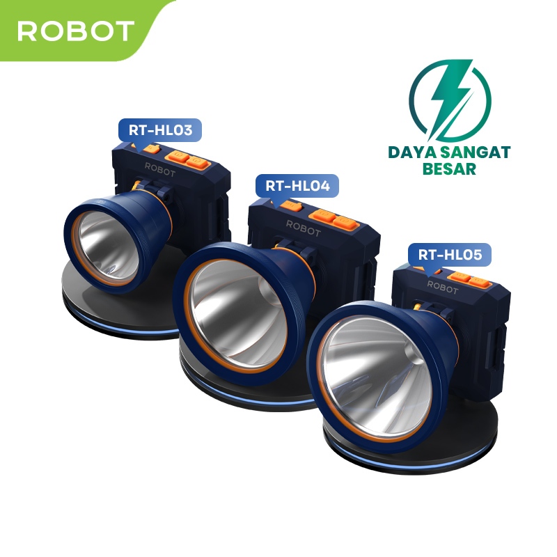 ROBOT Senter Headlamp Outdoor Emergency Lamp RT-HL04/RT-HL05 LED 300-5400 mAH Rechargeable Original - Garansi 1 Tahun