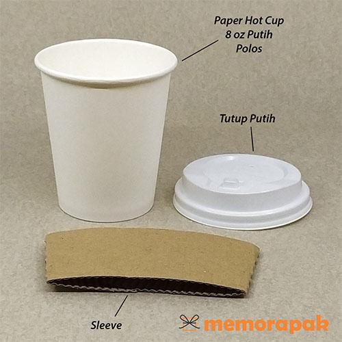 PAPER CUP 8 OZ - HOT CUP / GELAS KERTAS 270 ML + TUTUP + SLEEVE - COKELAT