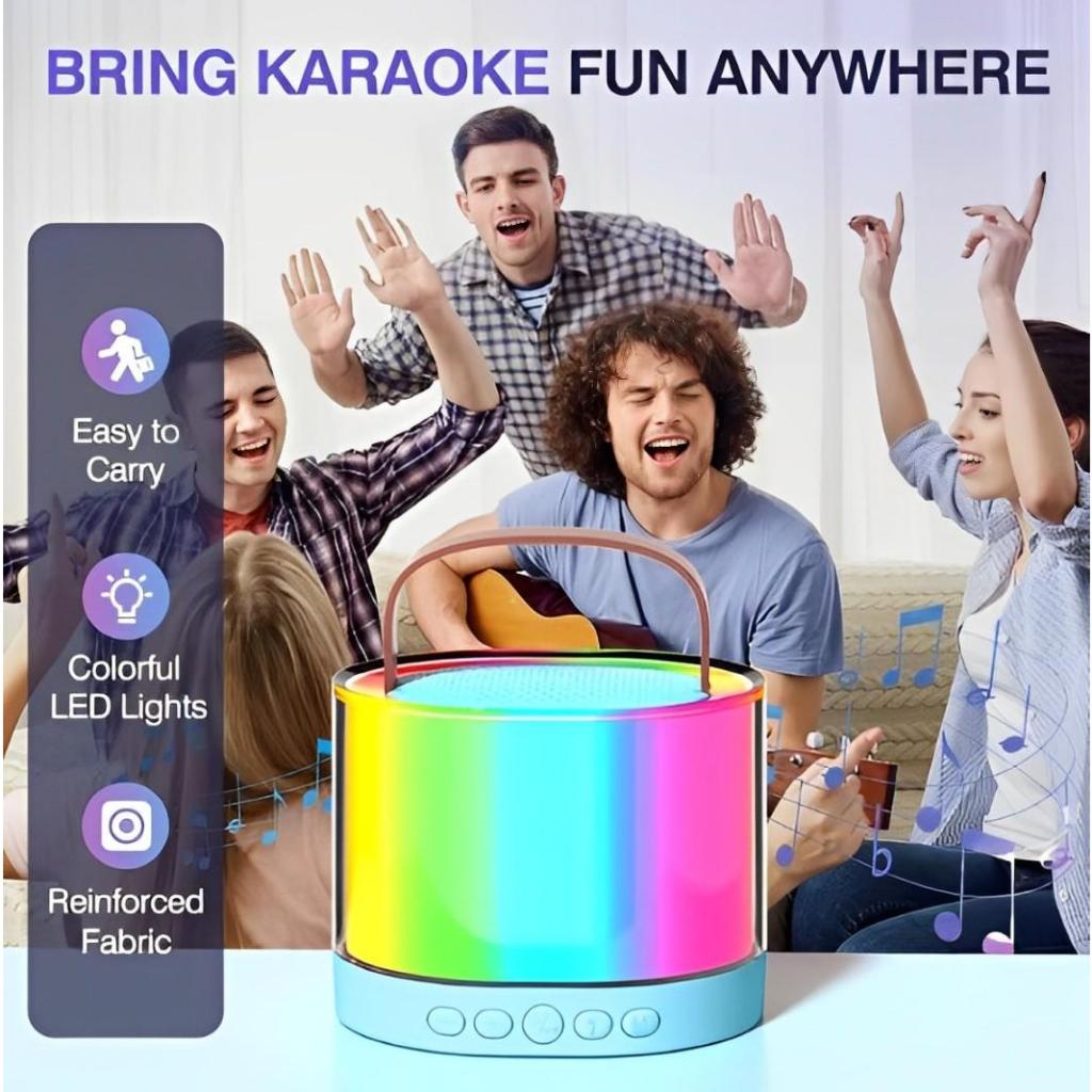 alexamarket Speaker Karaoke 2 Mikrofon Speaker Bluetooth Mini Portabel dengan Efek Pengubah Suara dan Lampu LED for Karaoke Party