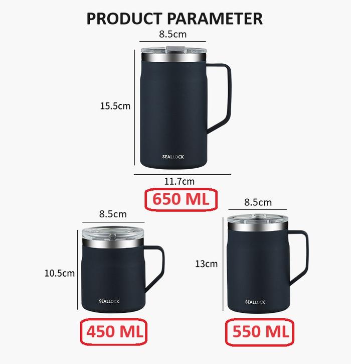 GELAS MUG SEALLOCK STAINLESS STEEL 304 CANGKIR KOPI / COFFEE TUMBLER - ELEGANT WHITE, 450 ML