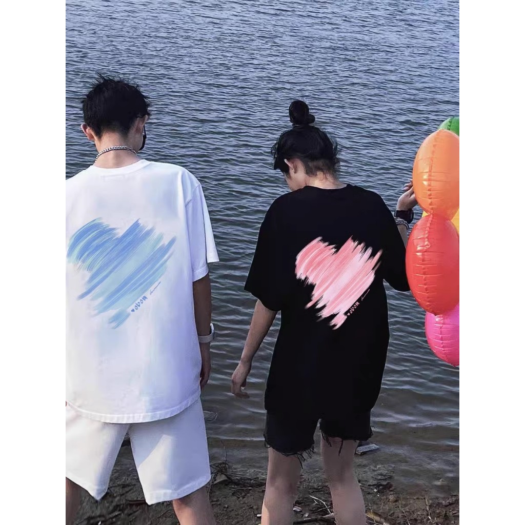 Biru Berwarna Merah Muda Cinta baju kaos pria T shirt wanita t shirt pria couple pasangan oversize couple