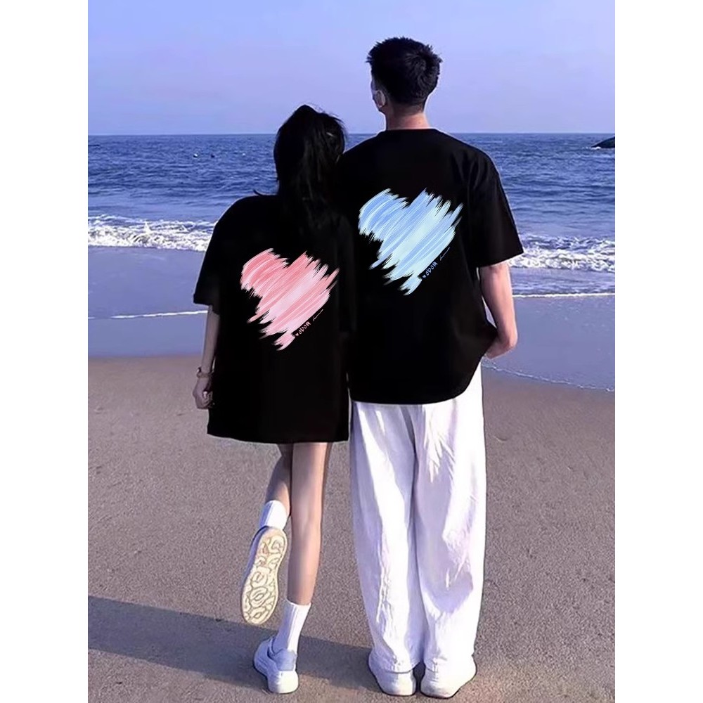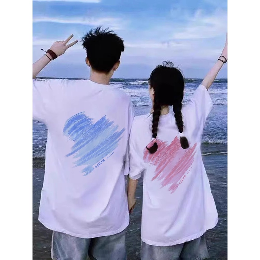 Biru Berwarna Merah Muda Cinta baju kaos pria T shirt wanita t shirt pria couple pasangan oversize couple