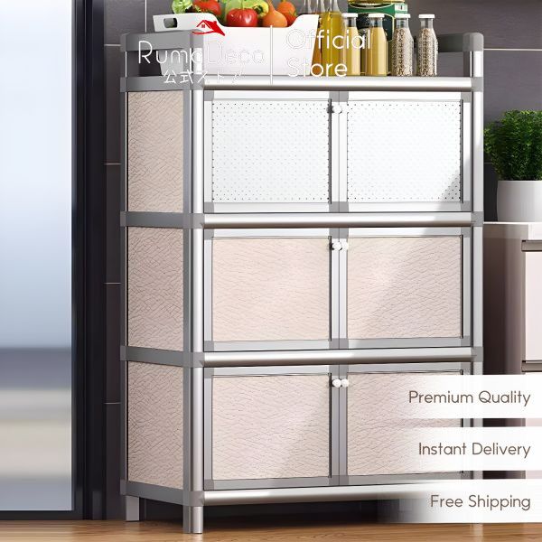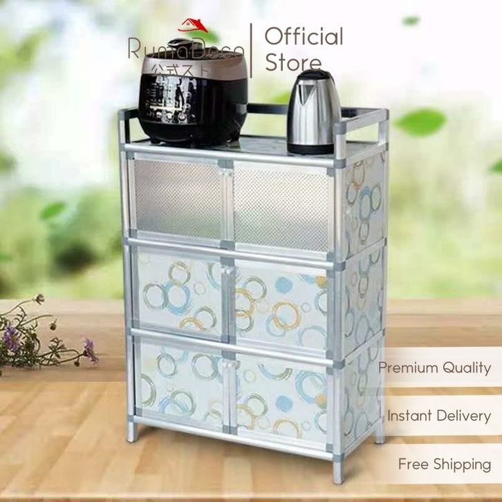 「 RUMADECO 」Lemari Piring Alumunium Minimalist Lemari Dapur Rak Dapur serbaa Rak Piring Jumbo