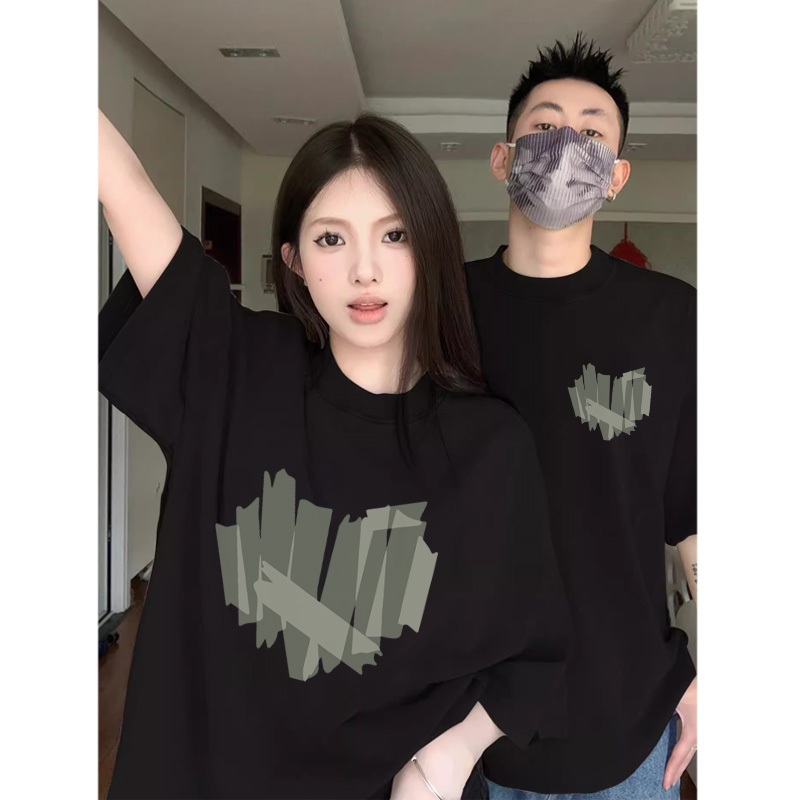 retro Amerika cinta hijau baju kaos pria T shirt wanita t shirt pria couple pasangan oversize couple