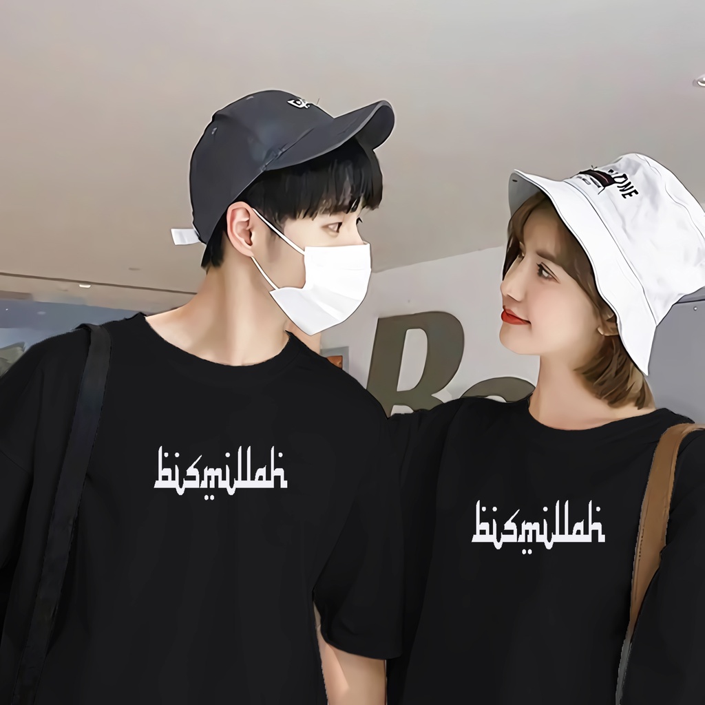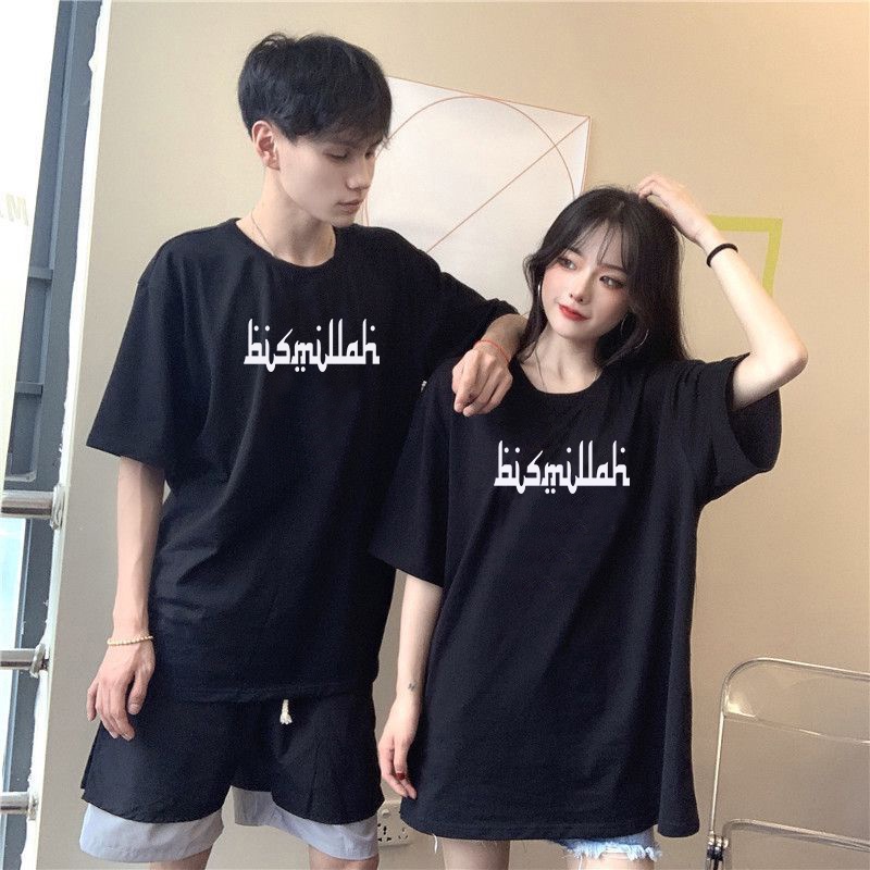 Baju Kaos Distro Pasangan Couple Biismillah Pria Dan Wanita Katun Combed Cowok Cewek D3W4SA Jumbo Warna Premium Atasan Perempuan Laki Laki Big Size Terbaru Keren Murah Kekinian