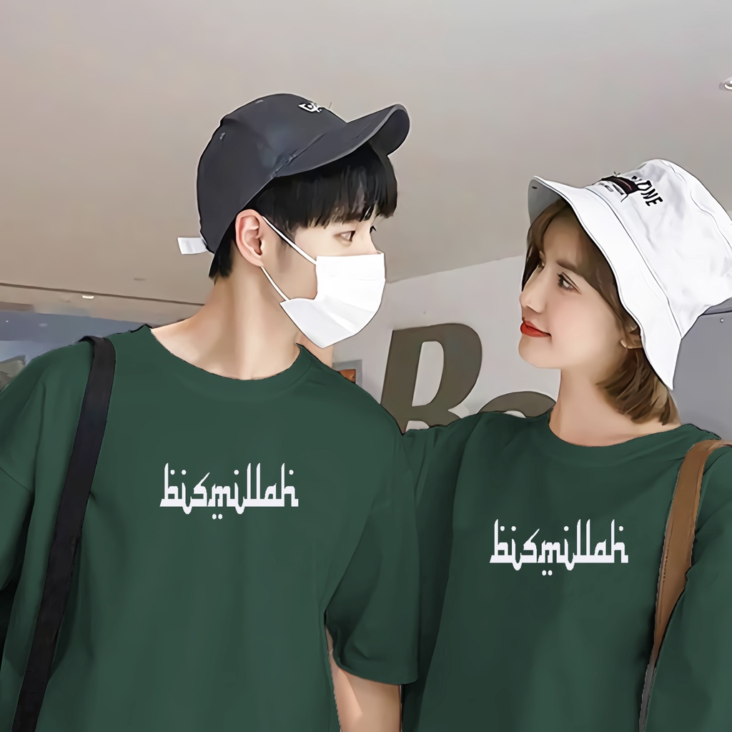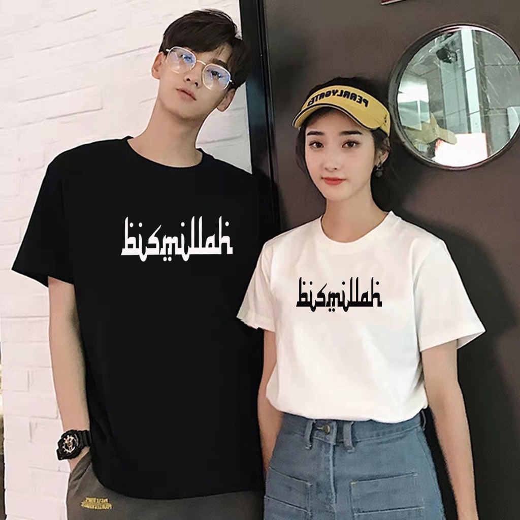 Baju Kaos Distro Pasangan Couple Biismillah Pria Dan Wanita Katun Combed Cowok Cewek D3W4SA Jumbo Warna Premium Atasan Perempuan Laki Laki Big Size Terbaru Keren Murah Kekinian