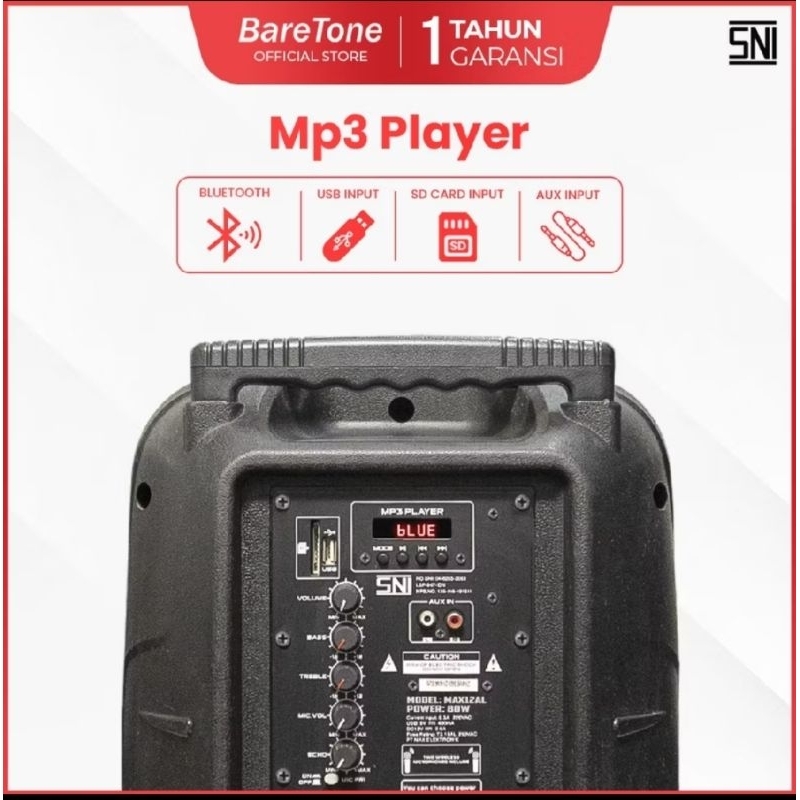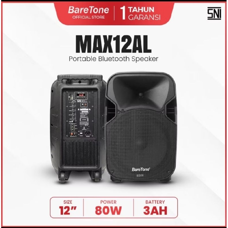 BareTone Max12al Speaker Aktif Portable Meeting Wireless Karaoke 12 Inch Bluetooth Plus 2 Unit Mic Wireless BareTone Original