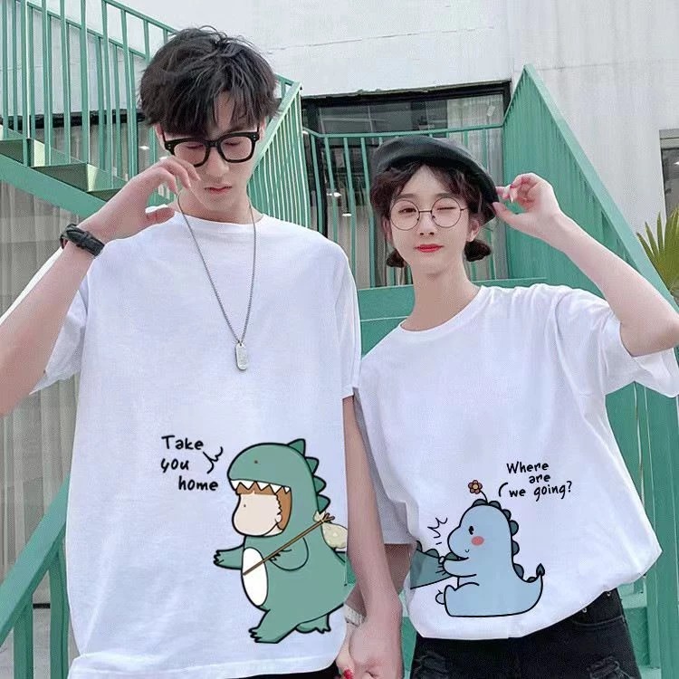 MYSTIQUE ID BAJU KAOS PASANGAN COUPLE DINO LUCU BISA TAMBAH NAMA UNTUK D3W4SA ANAK