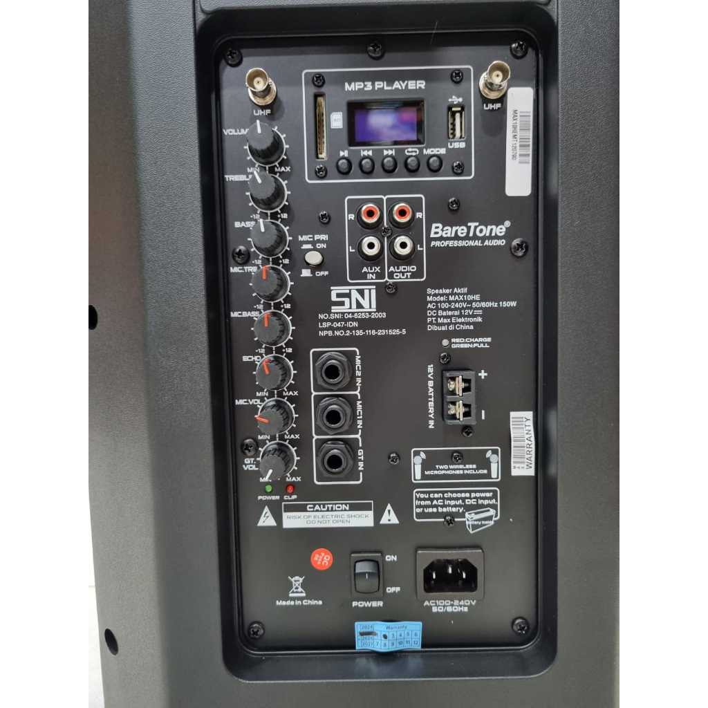 Speaker Portable 10 Inch Baretone Max10he 150Watt Usb Bluetooth Original