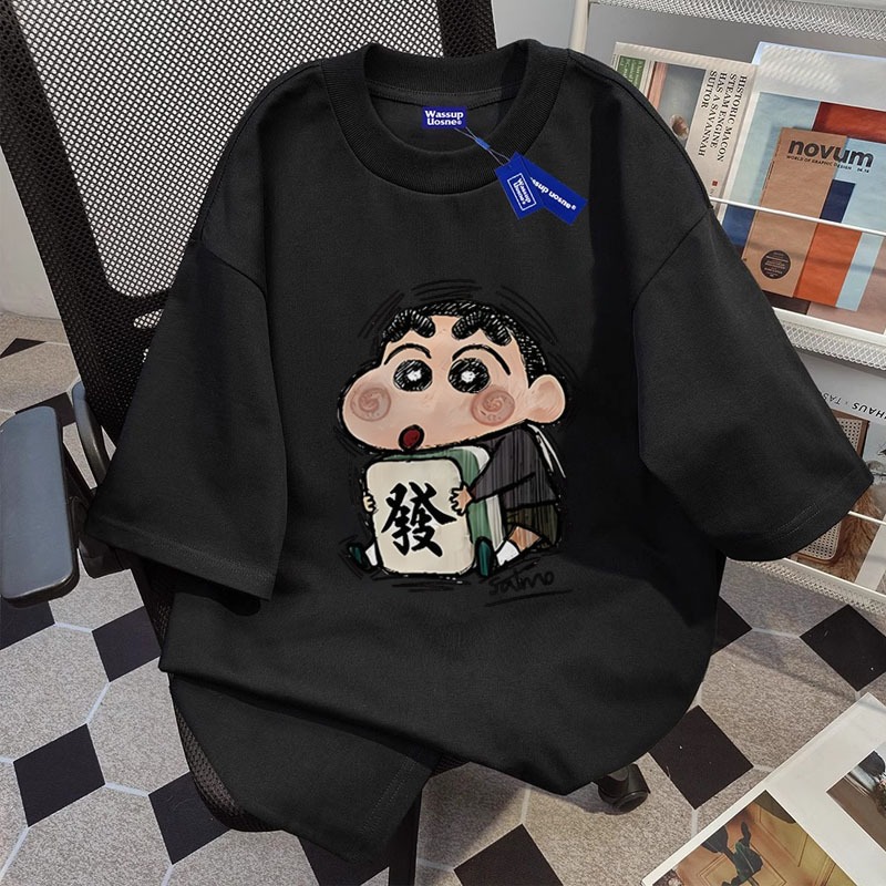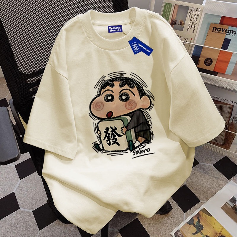 Mahjong Crayon Shin Kartun pola pencetakan Gaya Amerika baju atasan wanita terbaru kaos pria oversize couple t shirt vintage