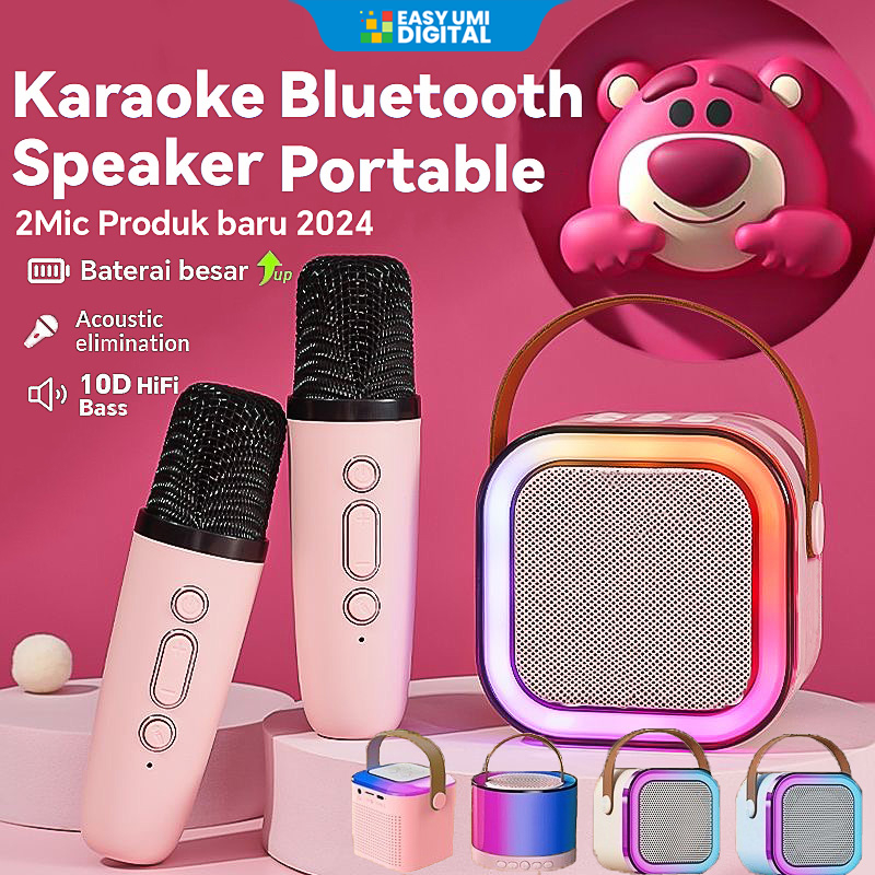 1 tahun Bluetooth Speaker Karaoke Microphone 2pcs Set Mini Portable Super Bass Home KTV RGB Light Wireless Speaker Bluetooth