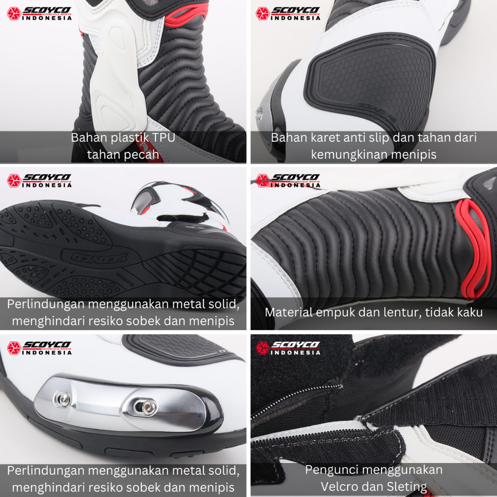 Sepatu Touring Kulit | Safety Shoes | Racing Motorcycle Boots Long Ankle Scoyco MR001