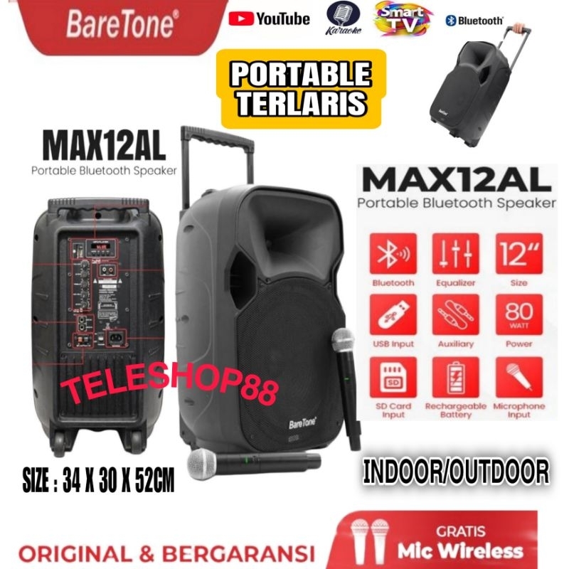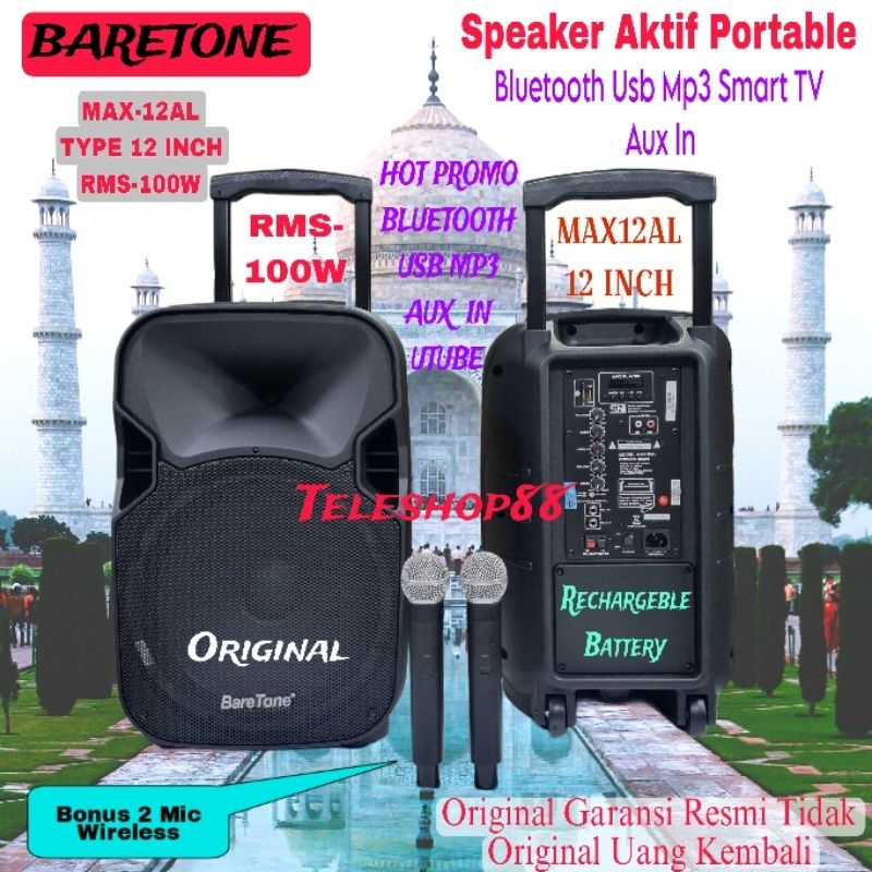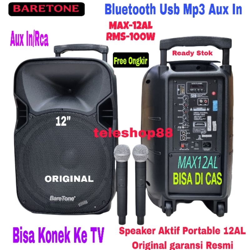 Speaker Aktif Portable 12 Inch Baretone MAX12AL Wireless Bluetooth Usb Mp3 Original