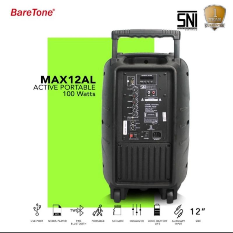 speaker portable wireless baretone max 12al original 12 inch bluetooth