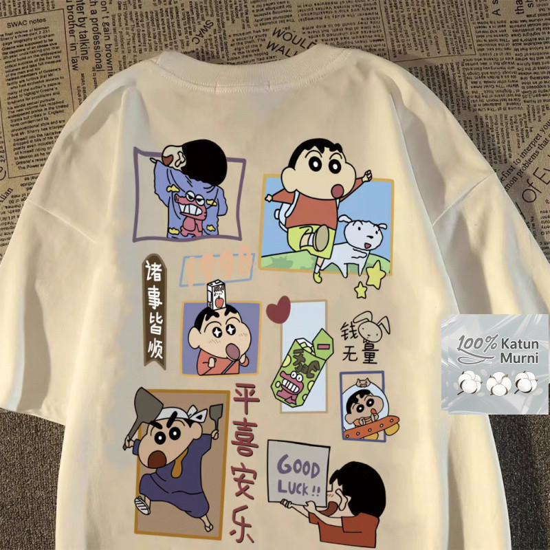 Kaos Lengan Pendek Katun Pria Kaos Lengan Pendek Katun Shin chan Gaya Retro JepangUntuk Pasangan