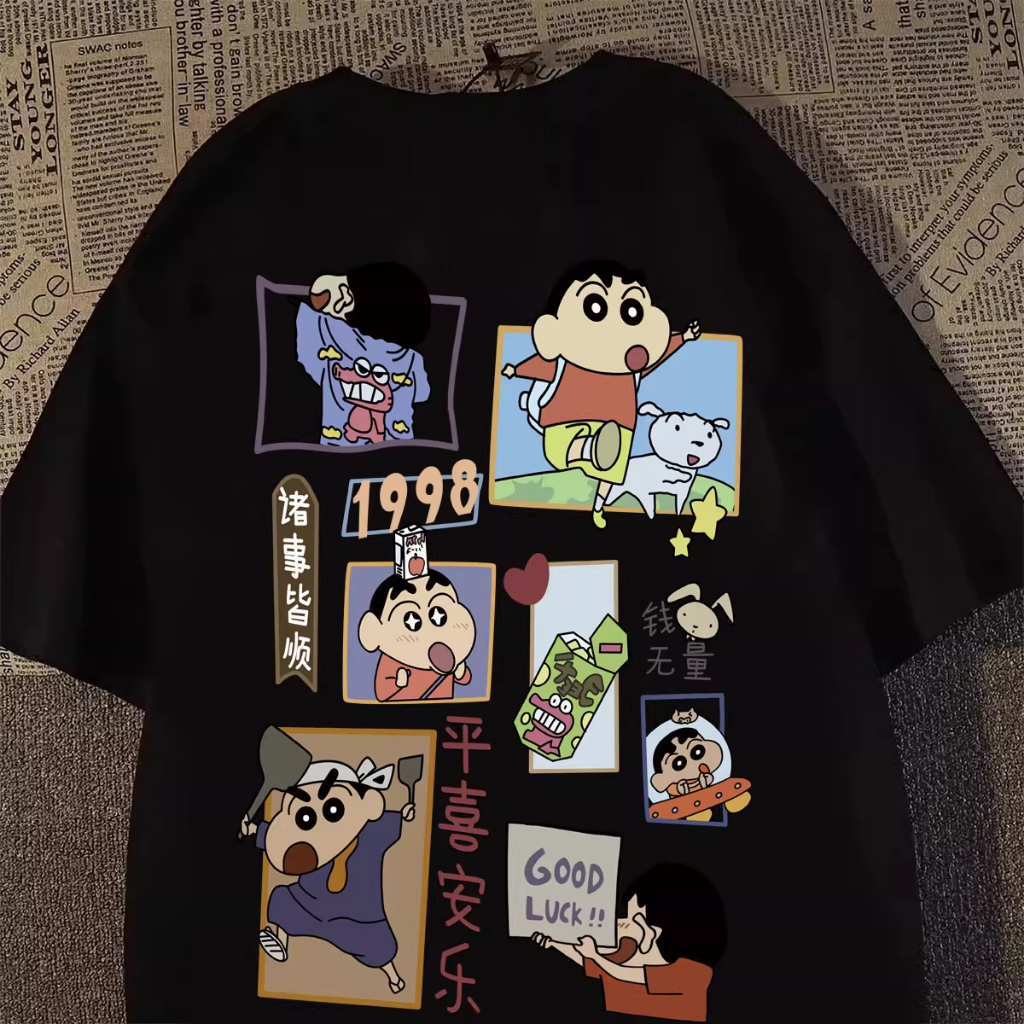 Kaos Lengan Pendek Katun Pria Kaos Lengan Pendek Katun Shin chan Gaya Retro JepangUntuk Pasangan