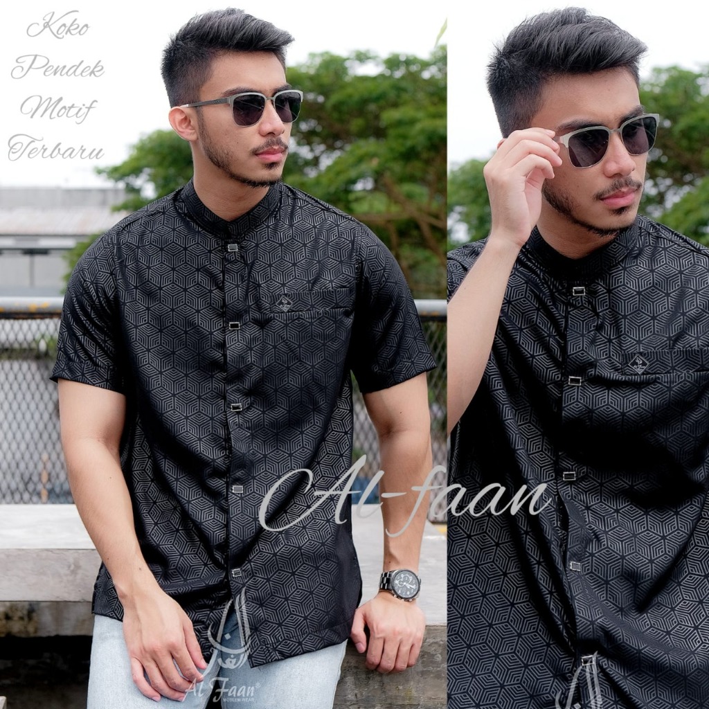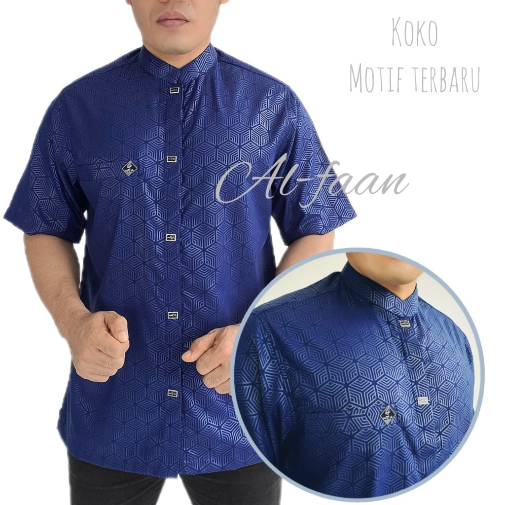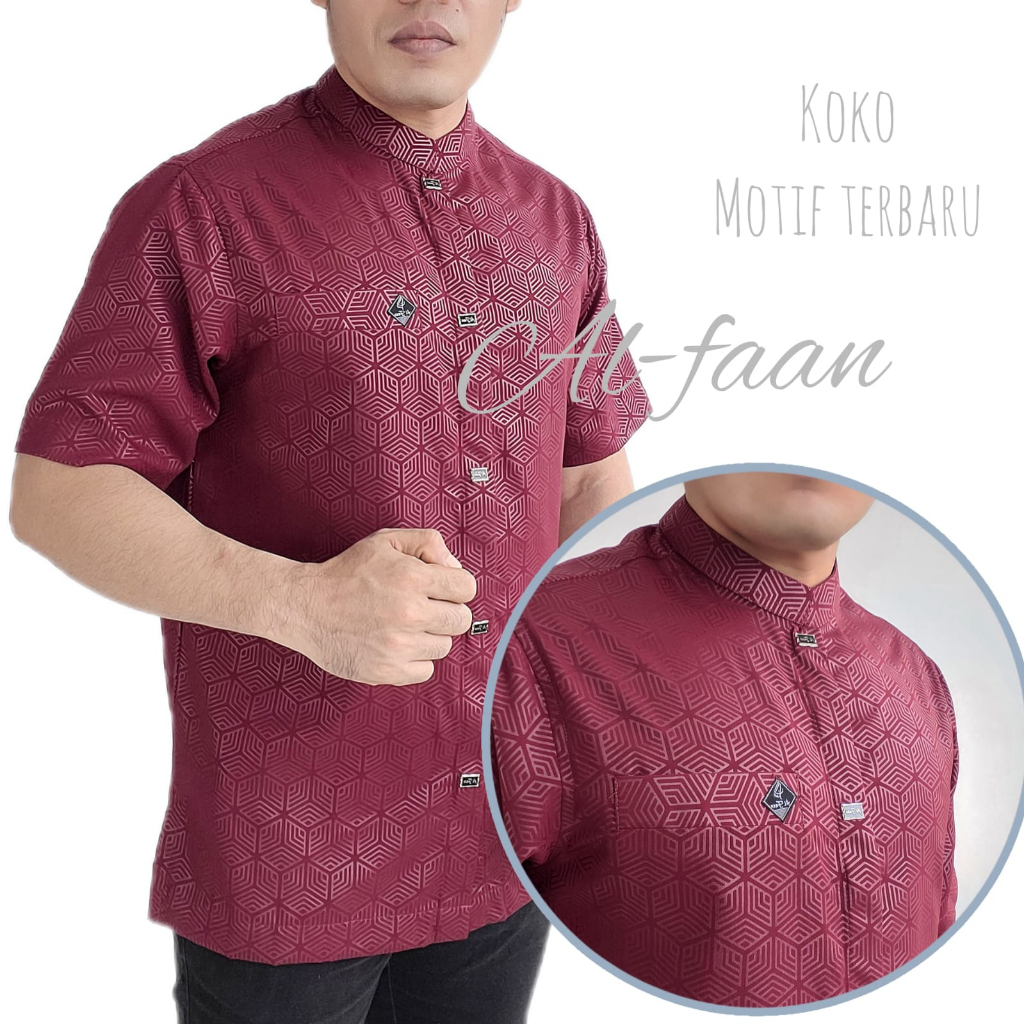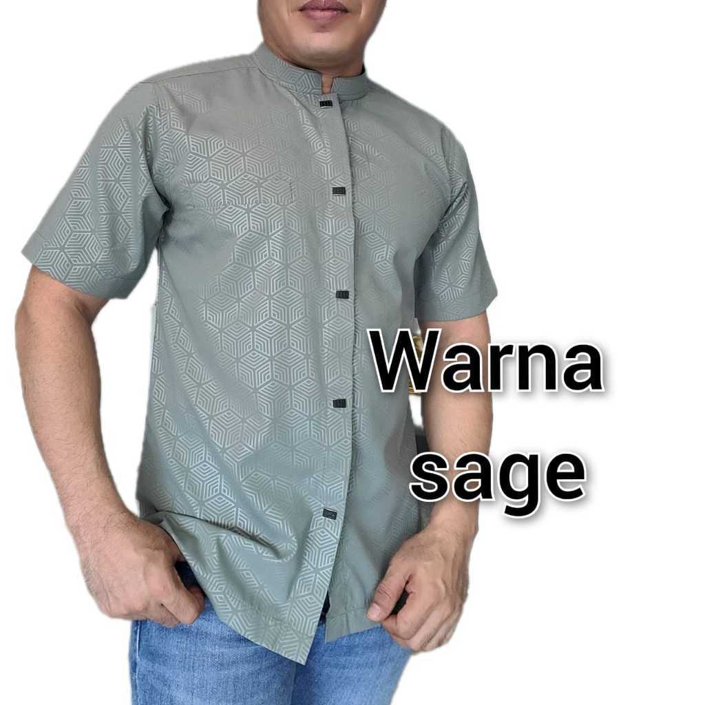 Kemeja Koko Lengan Pendek Pria Kemko Pria Kemeja kurta motif emboss lengan pendek